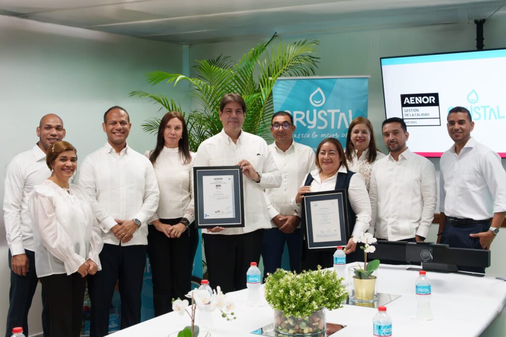 Santo Domingo, República Dominicana — Agua Crystal, una marca convertida en tradición para los dominicanos, ha renovado la certificación ISO 9001:2015, para sus actividades de embotellado y comercialización de agua purificada, un estándar internacional reconocido por su enfoque en la gestión de la calidad y en la mejora continua.