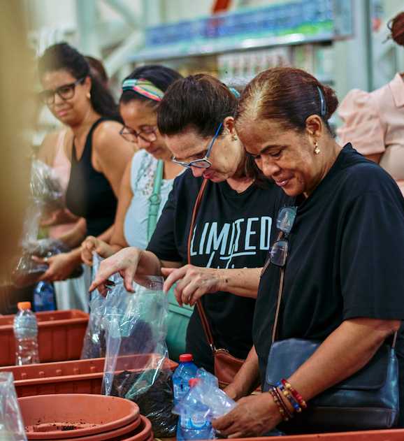 Uno de los espacios más concurridos es el huerto en casa, un taller donde los participantes aprenden a transformar balcones, patios o terrazas en pequeños espacios productivos.